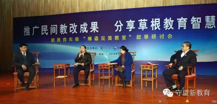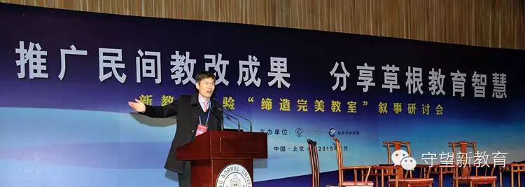 1、中国教育学会在北京师范大学主办“新教育实验缔造完美教室专题叙事研讨会”。2015年1月8—9号,来自全国近千名教师、学者、教育部门负责人参加了会议。研讨会上,郭明晓、张硕果、王兮、高波、殷卫娟、张尊香、王景、时朝丽、王桂香等9位新教育实验教师代表,生动展现了缔造完美教室行动系统的基本理念、策略架构和实施路径,反映了新教育实验15年来在缔造完美教室中的积极探索。陶西平、石中英、肖川、刘铁芳、窦桂梅、文东茅、徐峰等著名教育学者、专家、企业家和多家主流媒体,应邀参会点评报道,盛赞新教育。教育部基础教育司司长王定华《为新教育点赞》。