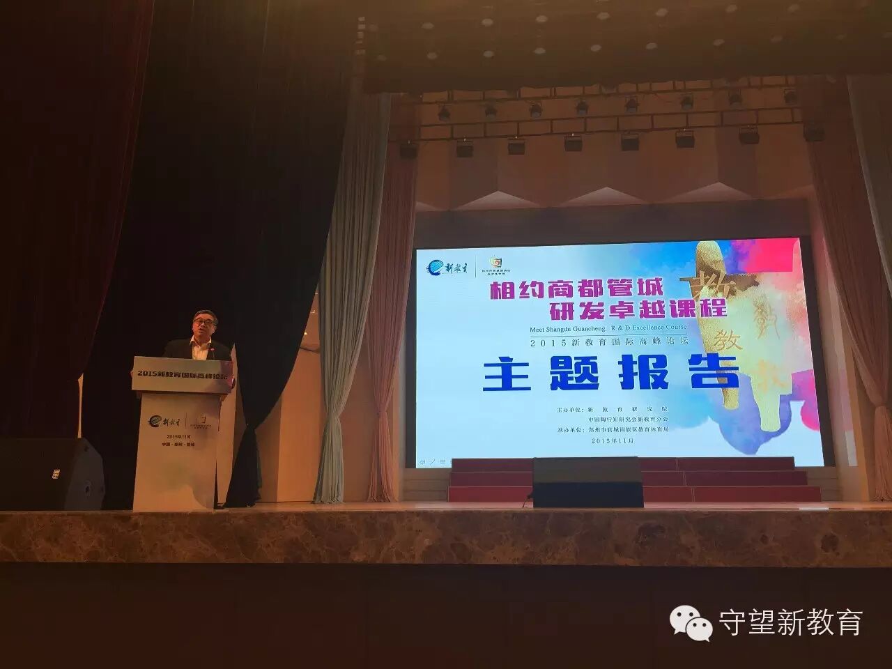 2、新教育实验第七届实验区工作会议,“相约西域奎屯,共话区域推进”。2015年5月20日—22日,来自全国各地60多个实验区的新教育专家学者、实验区教育局局长、新教育实验学校校长、榜样教师代表共300多新教育同人汇聚美丽奎屯。新教育实验花开新疆奎屯,“一直以来,新教育理念在奎屯教育的发展之路上引领着我们前行的脚步,我们有幸能与新教育共舞,舞出奎屯教育的生机与活力;舞出奎屯教育的境界与气度;更舞出了奎屯教育的朴素至纯与不凡品格。” 奎屯区域新教育实验成为新教育又一道亮丽的风景。 3、2015年7月13-14号,新教育实验第十五届年会,“相约天府金堂,共话生命教育”。来自美国、台湾、香港及大陆的教育专家、学者以及全国各地的知名校长和教师代表共1800余人参加了此次研讨会。金堂新教育人展示了新教育实验在天府区域的实践创造,新教育实验发起人朱永新做《拓展生命的长宽高》的新生命教育主题演讲,继续引领新教育人开拓前进,走向未来。同期,中美教育高峰论坛也在金堂成功举办。 4、新教育实验第五届国际高峰论坛,“相约商都管城,研发卓越课程”。2015年11月14日、15日,来自美国、德国、芬兰、中国台湾等国家与地区的专家以及中国大陆各地的新教育同仁,“齐聚商都管城,共话课程研发”。800多位新教育同仁实地考察、聆听分享河南郑州管城实验区新教育同人的实践创新。三个分论坛上,几十位新教育课程研发先进榜样登台演讲,交流探讨新教育课程研发新成果。论坛发布新教育实验《管城宣言》。 5、2015年新教育实验继续汇聚美好,共创未来。全国著名青少年问题研究、家庭教育研究专家孙云晓,应邀出任新家庭教育研究院长;美国波士顿麻州大学严文藩教授,应邀出任新一届新教育研究中心主任;上海师大著名教授、儿童文学作家、著名阅读推广人梅子涵,出任新阅读研究所长;张荣伟、冯建军、冯卫东、李镇西、童喜喜、蓝玫、李一慢、张硕果、吴勇、许卫国等分别在新教育各部门出任新职,领衔负责各机构各重大实验项目课题。